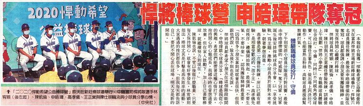 悍將棒球營 申皓瑋帶隊奪冠