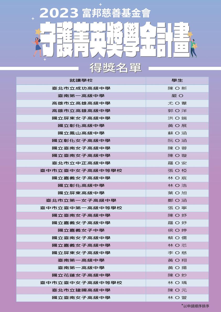 年富邦「守護菁英獎學金,得獎名單公告